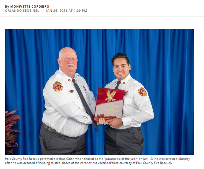 8、讽刺!男子获刚获“年度医务人员”表彰,却因偷3剂疫苗被捕