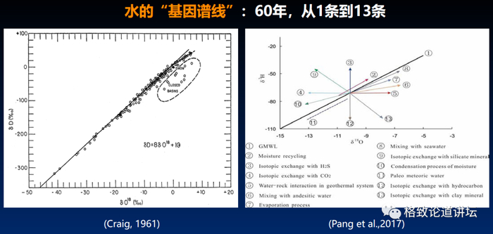 但在这个地方,我们逮着了岩浆水,岩浆水最早的解码工具就是这样的一条线,这是60年前(Hamon Craig)设计的降水线。