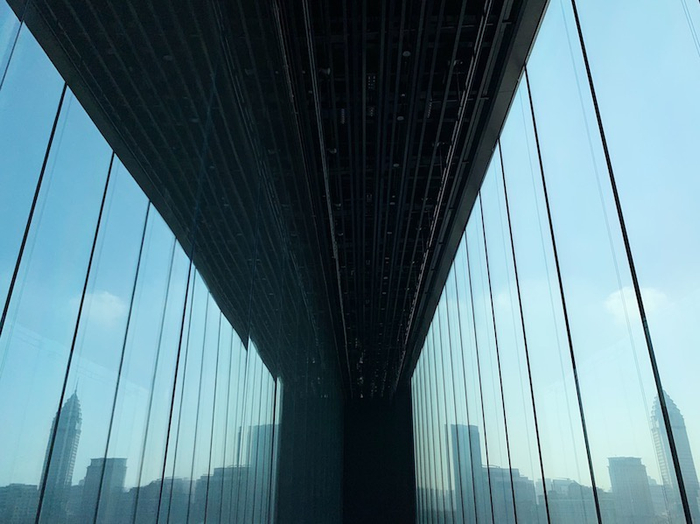 玻璃是浦东美术馆重要的组成。澎湃新闻 图 光在建筑间舞蹈,会否影响未来作品的展示?这个担心大可不必,玻璃均配有三层帘布,可以根据展示要求调整展厅光线,如果将三层帘布全部放下,则完全不透光。