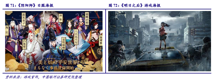 具体出海游戏产品方面,《荒野行动》是网易旗下当之无愧的王牌出海产品。截至2020年Q3,《荒野行动》在日本预估的总收入已经突破12.7亿美元,并成为连续两年(2018及2019年)入围《Fami通手游白皮书》收入TOP10唯一的中国游戏。除《荒野行动》外,《阴阳师》《明日之后》《机动都市阿尔法》《量子特攻》等产品也曾相继登顶日本App Store免费榜。日本之外,网易也积极向其他市场探索。《明日之后》成功走出亚洲,拿下美国、加拿大、泰国等App Store游戏免费榜前3名,目前《明日之后》全球下载量已突破2亿次。