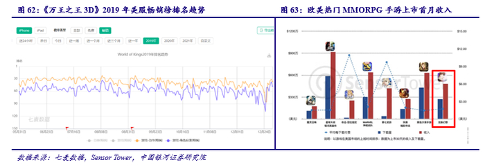 在具体出海游戏方面,MMORPG游戏《万王之王3D》于2019年在欧美自主发行后收入及排名表现良好,海外自主发行总流水超5亿,并且流水表现非常稳定,累计注册玩家超1290万,月活用户210.3万;此外,现象级产品《龙族幻想》在中国内地及海外市场的成功发行亦重要为公司收益增长做出贡献,战绩辉煌。2020年《龙族幻想》在欧美地区推出后位列美国iOSAppStore MMORPG手游下载榜榜首以及RPG手游第二,同时进入欧洲八个地区市场iOSAppStore手游下载榜Top10,跻身欧美热门RPG手游;在日本推出后,成为首款在日本iOSAppStore和GooglePlay免费榜位居首位的中国MMORPG手游,且在当地付费表现十分优异,三个月流水均超1500万美元;在东南亚地区推出后,连续八日荣登泰国iOSAppStore和GooglePlay免费游戏榜首位,并于新加坡连续九日荣登GooglePlay免费游戏榜首位。《龙族幻想》已成为近年来在海外市场最成功的国产RPG手游之一。