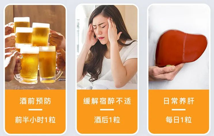 这个解酒片就不一样了,属于“事前”解酒。原理就是能保护肝脏不受酒精侵害,加速酒精代谢。