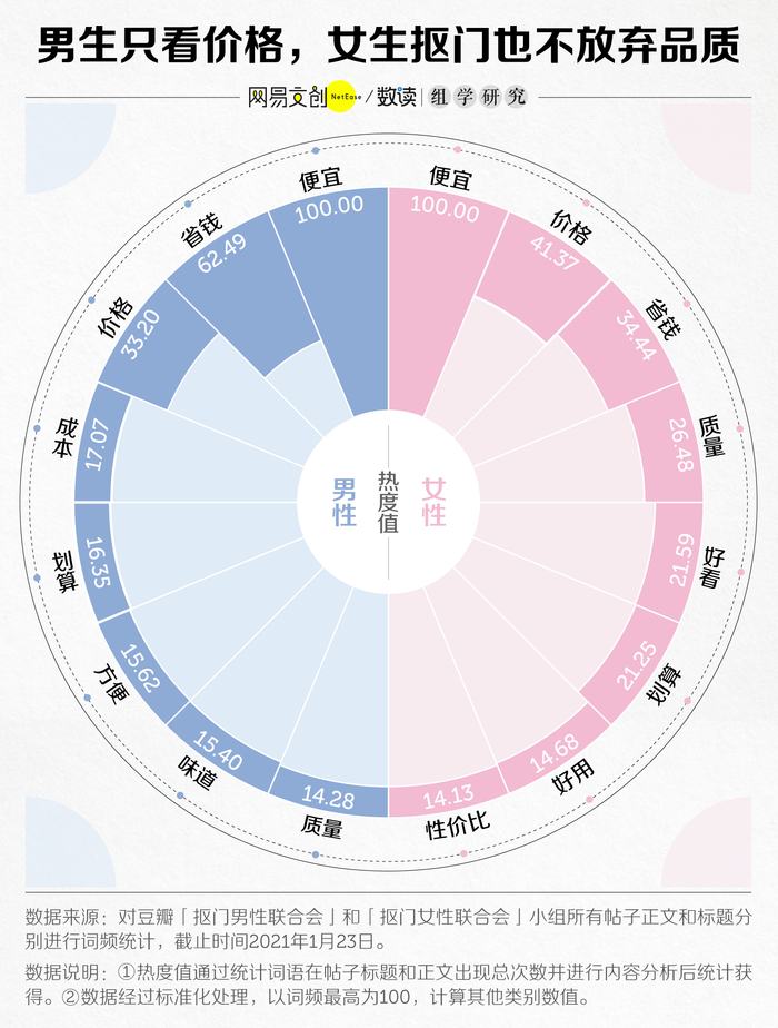 不过,「男抠组」和「女抠组」的抠门还是存在区别的,从两个小组不同的简介上也能窥见一斑。「男抠组」的简介是“我们抠不是因为穷,我们就是抠”,而「女抠组」则是“我们抠是因为穷,所以抠”。