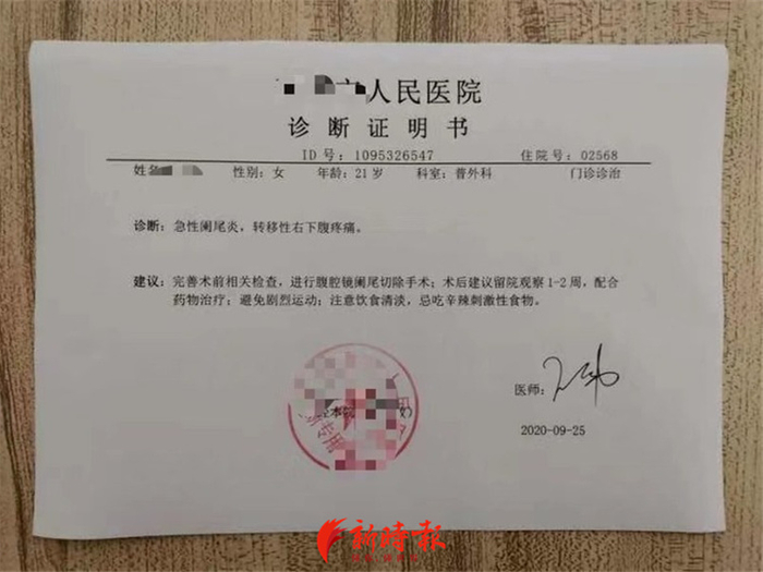 新时报记者从一处商家“购买”了价格为200元的济南某医院假条,假条中详细记录了患者的姓名、年龄、性别、就诊科室、就诊类型、病情诊断等多项数据内容,并且在此假条右下角处还有医师签名与医院公章。