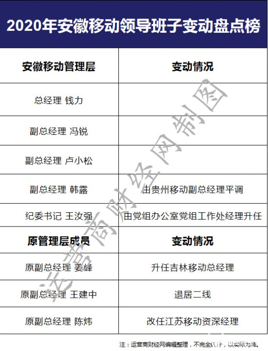 日前,运营商财经网独家整理了“2020年安徽移动领导班子变动盘点榜”,其中新增添了一位副总经理韩露,他原是从贵州移动副总经理平调而来,但他在任贵州移动副总经理6年后终于回到安徽,肯定开心。