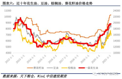 20/21年度,花生产量总体回升但局部受灾,加上花生油在疫情期间作为家庭消费用油需求有所增加,导致花生整体价格仍有所上涨,不过上涨幅度较低。