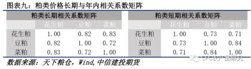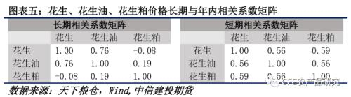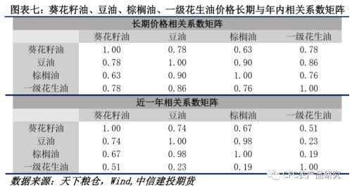 短期来看,由于不同油脂具有不同的应用场景,其价格相关性并没有那么显著。花生油与葵花籽油在家庭食用方面具有较高一致性,其短期相关系数较高;而棕榈油与豆油作为大宗油脂,消费场景更加广泛,其与花生油价格在短期的相关性大打折扣。