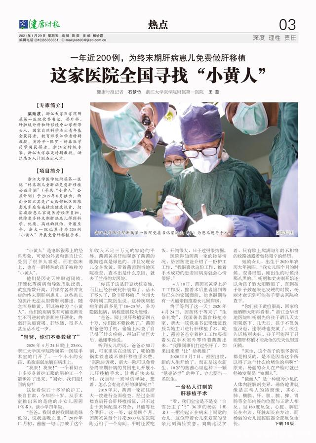 为终末期肝病患儿免费做肝移植,这家医院全国寻找小黄人