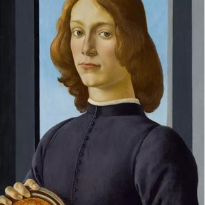 在这件《手持圆形圣像的年轻男子》中,画中年轻男子手指修长纤细,衣饰整洁优雅,眼神敏锐而忧郁,站在窗前,呈现出一种迷人而复杂的男性美感。此外,年轻人手中拿了一块圆形的圣像,或许可以合理的猜测:画中年轻人与他手中所拿圣像中的圣人同名,波提切利以此来说明画中主角身份,也有可能是手中所持圣人为年轻男子家族的守护圣人。