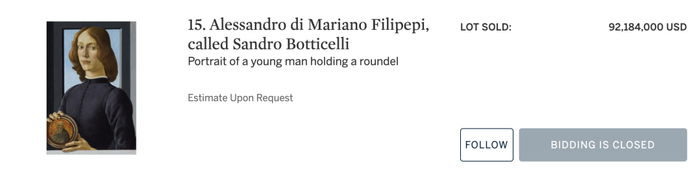 波提切利笔下“年轻男子”,九千多万美元纽约成交