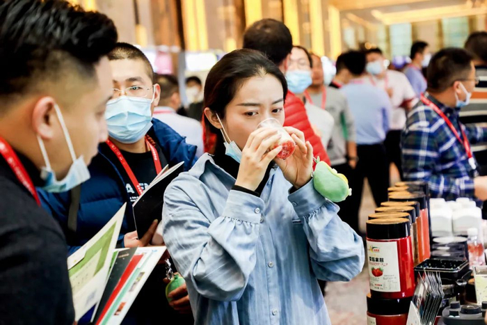 1月5日,每年一度的饮品行业盛会“万有饮力大会”在上海举行,参会者品尝各式饮品。图/受访者提供