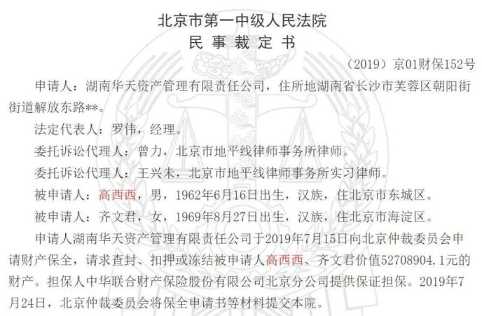 高希希名下公司股权冻结情况图片来源:启信宝截图