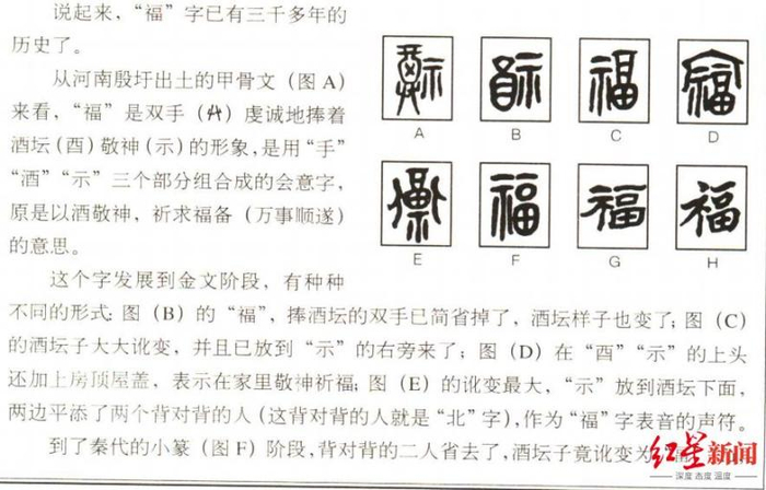 红星新闻记者多方查阅发现,“福”字是常用字,古代书籍中,“福”字经常出现,可以追溯到甲骨文时期。