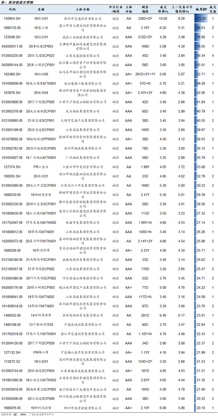 选取的个券是剩余期限在1个月以上,估值偏离20bp以上。