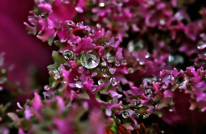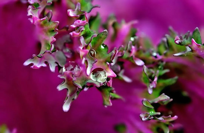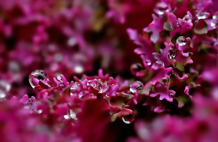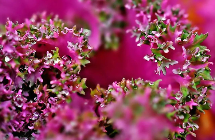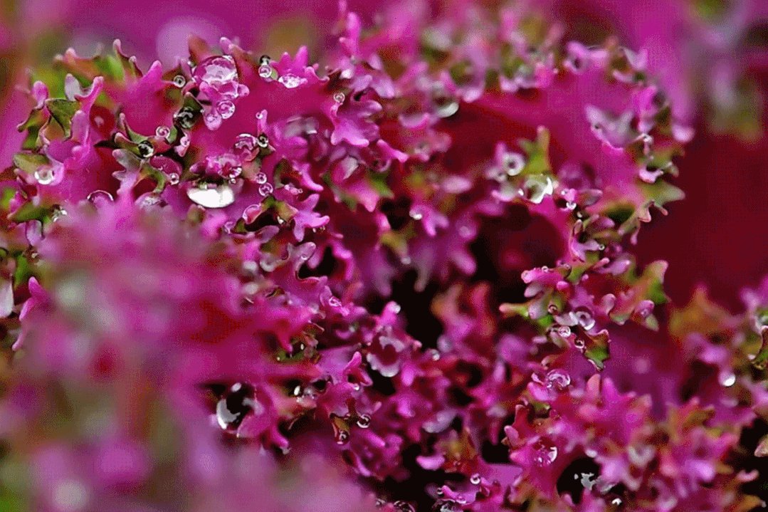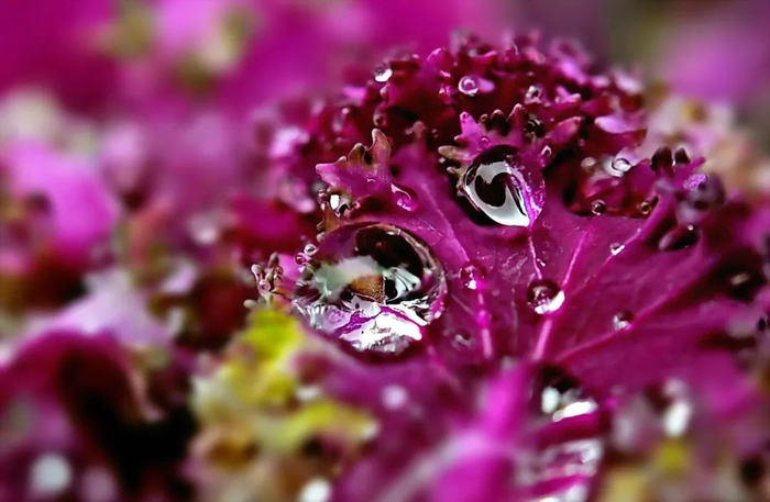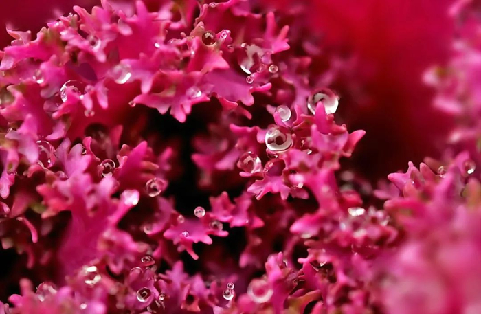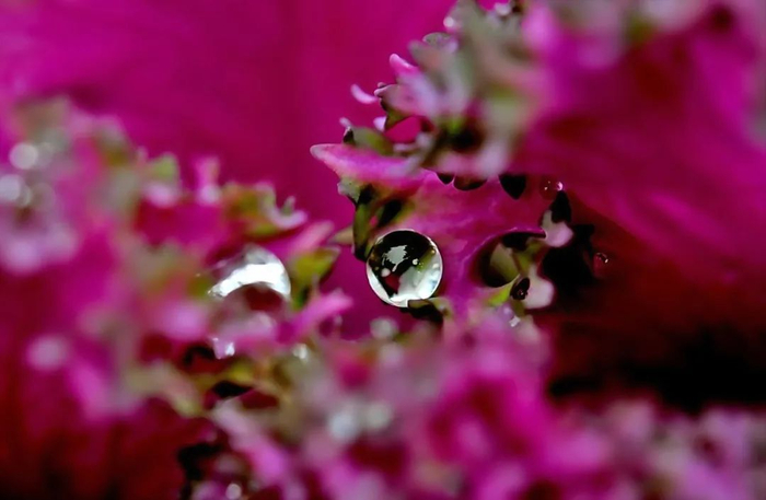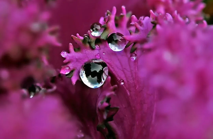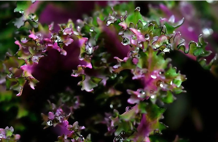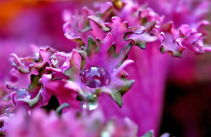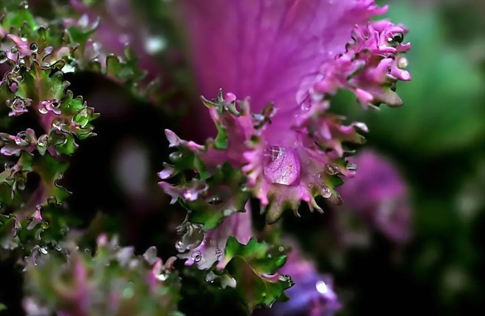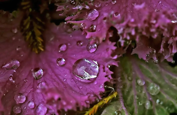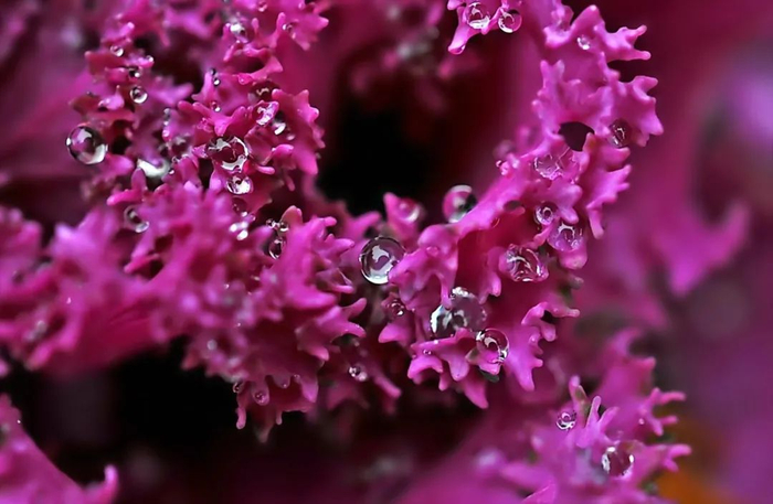 附着在羽衣甘蓝上的小水珠如此晶莹剔透