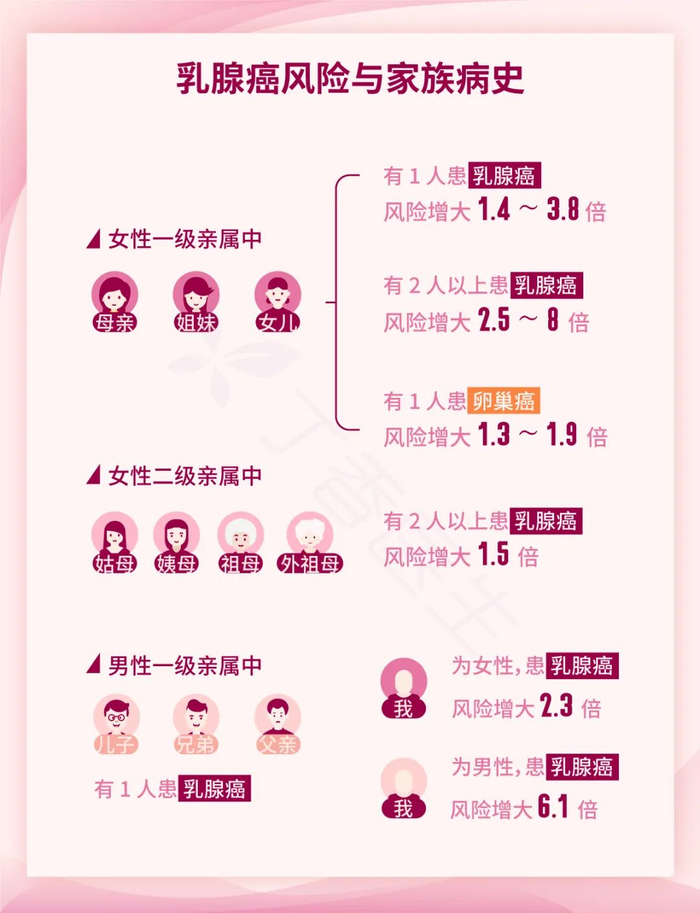 如果你不清楚自己和家人的具体状况,可以去正规的医院,找乳腺科医生讨论是否需要进行筛查或者进一步检查。