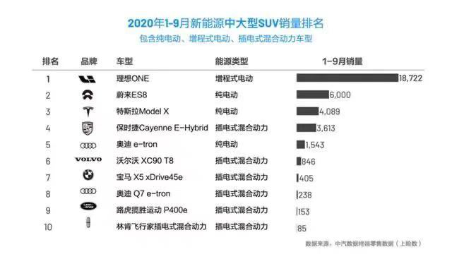 根据中汽数据终端零售数据此前公布的2020年1-9月中大型SUV销量排名来看,2-10位的车型售价均在50万元-180万元之间,销量上,该细分市场体量不大且消费者更偏爱豪华车型,从这个角度来说,售价32.8万元的理想ONE能否脱颖而出存在很多未知数。