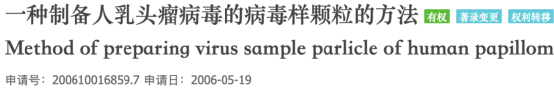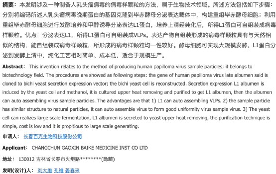 如果以上事实只能说明百克生物的独立研发能力有待提升,那么接下来要说的可就是公司的潜在侵权问题了。国家知识产权局显示,200610016859.7号发明专利“一种制备人乳头瘤病毒的病毒样颗粒的方法”由百克生物于2006年5月19日申请,专利发明人包括孔维、刘大维、姜春来。如果不是重名的话,这里的刘大维、姜春来正是百克生物招股书披露的核心技术人员。