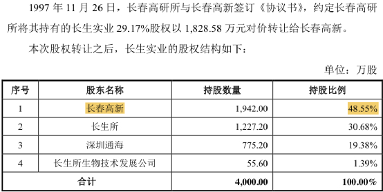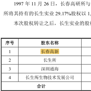 其实,百克生物与长生生物渊源颇深。2015年末,长生生物通过借壳连云港黄海机械股份有限公司(以下简称“黄海机械”)上市,黄海机械在重组报告书中披露了长生生物设立的历史背景。1996年5月和1997年11月,长春生物制品研究所、长春生物高技术应用研究所分别将其持有的长生生物19.38%股权、29.17%股权转让给长春高新,长春高新由此成为长生生物的控股股东。2004年4月,长春高新与吉林亚泰(集团)股份有限公司、高俊芳签订《股权转让合同》,分别向其转让长生生物34.68%股权、25.00%股权,长春高新自此结束对长生生物的控股。
