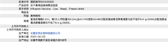 根据国家药监局公示的信息显示(如下图),百克生物批准文号为S20200002的冻干鼻喷流感减毒活疫苗(鼻用制剂)的批准日期实际是2020年4月2日。也就是说,百克生物这一疫苗产品的实际批准日期明显晚于招股书披露的批准日期,这应该是一个重大的矛盾。究竟是公司疏忽,还是有意为之?势必要解释清楚才行。