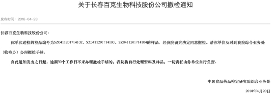 值得一提的是,百克生物在招股书中没有披露上述疫苗质量不合格事件,仅在问询函回复中承认存在未通过签发的情况。另外,百克生物还曾蹊跷地主动撤回疫苗样品检验。2018年4月20日,中检院发布通告,同意撤检百克生物编号为SZ0411201714102、SZ0411201714103、SZ0411201714104的样品。2019年1月30日,中检院再次发布通告,同意撤检迈丰生物编号为SP0402201810074、SP0402201810075的样品。但百克生物对撤检一事没有做任何披露,撤检原因无从得知。