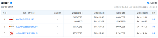 天眼查信息显示,渤海信托的股东分别是海航资本集团有限公司(51.23%)、北京海航金融控股有限公司(26.67%)、中国新华航空集团有限公司(22.1%)。