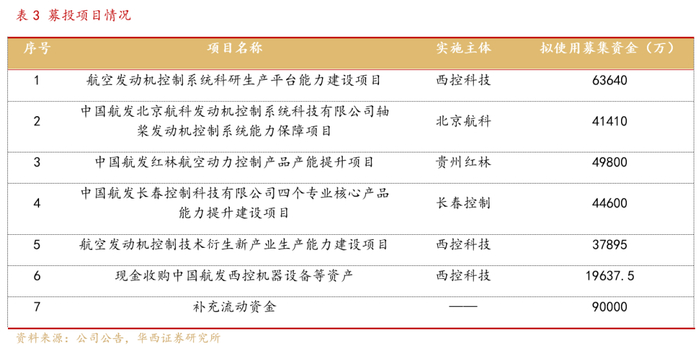 从募投项目来看,四个子公司得到全面覆盖,募投项目建成后将明显提升公司军品研制及生产能力,为公司长期可持续发展奠定坚实基础。项目(1)将解决西控科技现有航空产品中部分产品研制转小批生产、部分产品扩大批生产和部分产品修理等方面增量需求带来的生产能力缺口;项目(2)将补充北京航科承担的多种产品的轴桨发动机控制系统未来生产能力缺口;项目(3)将针对贵州红林业务和产品增量部分所需的产能提升要求进行核心能力提升建设;项目(4)将有效补充解决长春控制批生产及核心能力瓶颈所涉及的关键设备,优化配比现有生产制造能力,改善改造配套生产场所,保证公司产品高质量按期交付。