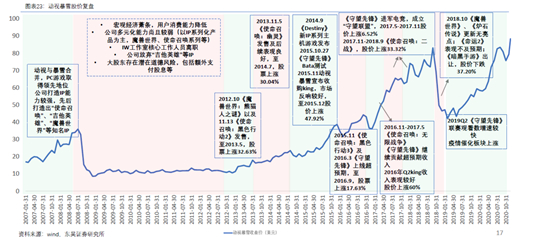 复盘动视暴雪股价发现,公司每一次股价上涨都与新游上线密切相关。2021将成为完美世界产品大年,储备多款重磅手游新品将在全球市场推出。