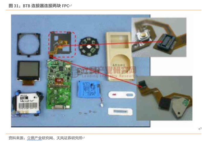 LCP软板的渗透加速带动BTB(Board to Board)连接器需求也相应增加。BTB连接器主要用来实现PCB的连接或PCB和软板的连接,一般由公头(Plug)和母座(Receptacle)两部分配对使用,其中公头一般焊在FPC排线端,母座焊在板端。受益于5G信号传输方式的变革,BTB连接器有望迎来量价齐升。目前BTB连接器在手机中主要应用于电池、主副板、前后置摄像头、侧键、喇叭、指纹识别等模组,一个手机主板上最小能有5个以上的BTB连接器,并且预计三摄、四摄的设计将令单部手机增加1-3对BTB连接器,同时,5G手机天线数量将从目前2或4根增加到8或16根,令单部手机增加1-2对BTB连接器。