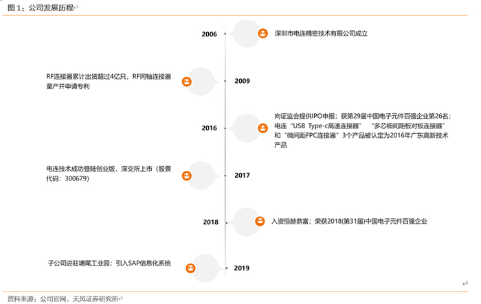 公司创办于2006年,2017年7月A股上市,专业从事微型电子连接器及互连系统相关产品的技术研究、设计、制造和销售服务,具备高可靠、高性能产品的设计、制造能力;公司凭借领先的技术水平,已成为深圳市企业技术中心、深圳市质量强市骨干企业、广东省创新型试点企业和国家级高新技术企业。公司坚持不断开拓创新,成功开发出一系列新产品并成功推向市场,多项产品获得“广东省高新技术产品”称号。