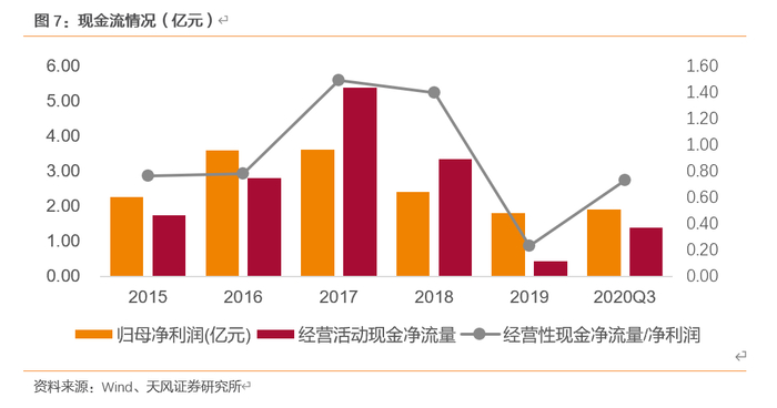 现金流整体表现良好,盈利质量逐年增强。2015-2018年,公司规模扩大,公司经营活动现金净流量皆为正,表明公司运营情况良好。2019年净利润现金比率下滑至0.23,主要因应收项目净增加及存货增加,2020Q3回升至0.73,处于健康水平。同时,公司资产负债率较低,截至2020Q3,资产负债率为19.32%,偿债能力较强。公司通过外延的方式入股恒赫鼎富(苏州)电子有限公司,正式切入FPC产业,借助成熟的FPC和SMT生产制造技术,打造公司未来面向5G的基于LCP/PPS/PI新材料的高频高速传输线,高频射频连接器,毫米波天线产业链,帮助公司加强行业周期性的能力,进一步优化、整合技术资源,不断提高公司的核心竞争力和可持续发展能力。