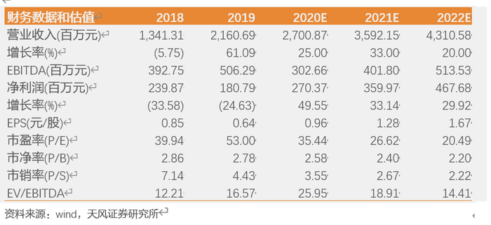 我们预计公司2020-2022年归母净利润分别为2.70/3.60和4.68亿元。