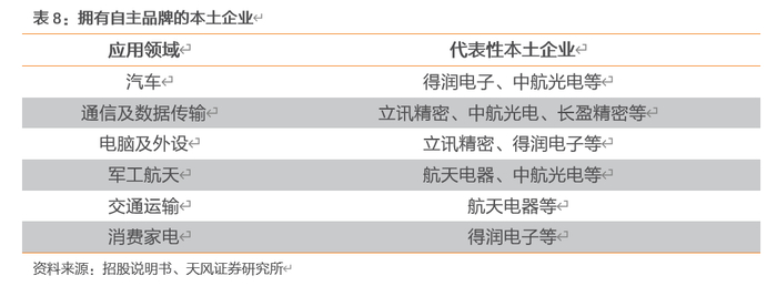 国内连接器的庞大市场,推动了本土连接器企业的快速发展。目前,在多个应用领域中,已涌现出一些技术水平高、自主研发能力强、资金规模雄厚、拥有自主品牌的本土企业: