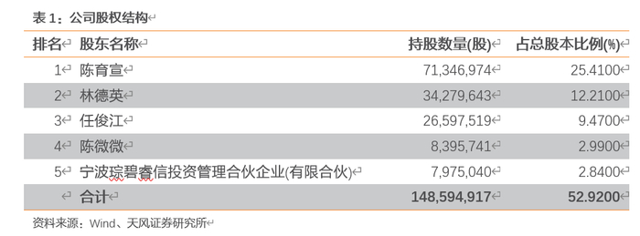 公司实际控制人为陈育宣、林德英夫妇,合计持有公司37.62%的股份。陈育宣先生现任公司董事长、法定代表人。公司第三大股东任俊江为公司创始人之一,现任公司董事,公司控制权稳定。
