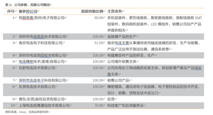 截至2020年中报,公司共拥有10家子公司,其中上海电连旭晟通信技术为2020新设立子公司。