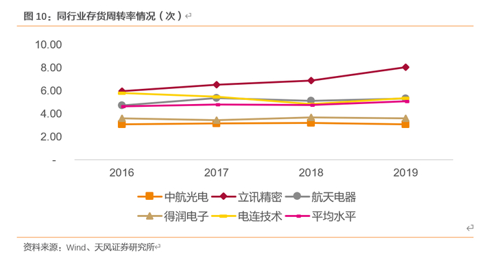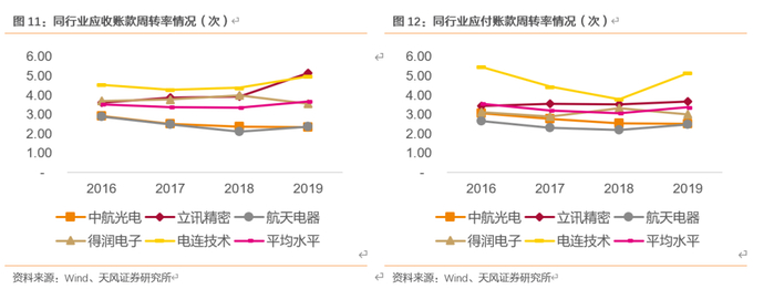 根据公司连接器主营业务,选取同行业公司,我们比较了各公司运营能力指标的情况,结果如下: