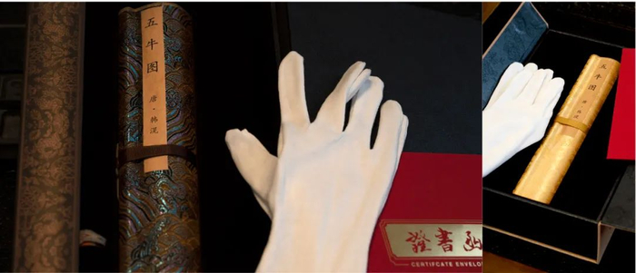 ▼友情提示:因画作珍贵,请打开画作前务必佩戴白手套,可使画作色泽鲜艳,保存时间更长久。