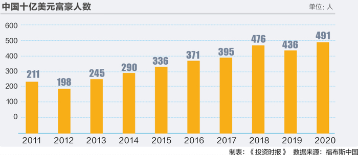 2020年,中国上榜福布斯十亿美元富豪人数达491人,财富净值总额近1.57万亿美元(约11万亿元人民币),十年复合增长率分别为8.8%和10.8%。中国百万亿规模的财富管理市场备受全球瞩目。