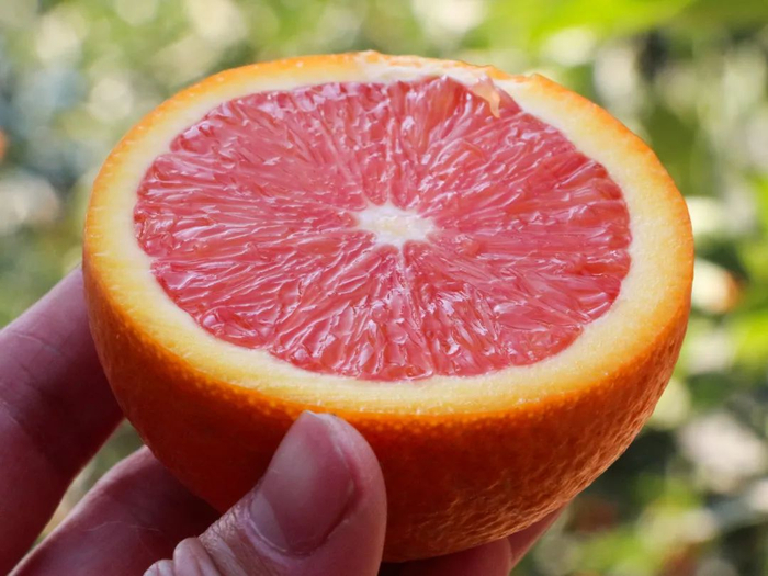 小刀划开薄薄的果皮,红玛瑙一般的果肉让人无法移开眼球,刀划破了无数小果珠,它们纷纷爆开,流的截面兜都兜不住,浓郁橙皮味1秒染香了整个房间~