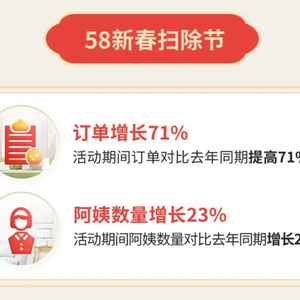 1月18日-2月11日,58同城到家精选锚定用户的服务刚需,推出新春大扫除随叫随到活动,为消费者带来极大的让利优惠,通过裂变红包、特惠套餐等福利政策有效激活市场需求,消费者在享受超值服务的同时,也带动商家订单量上涨。
