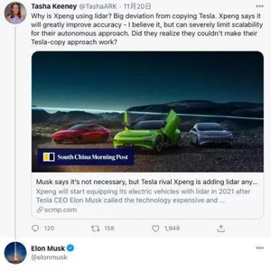2019年12月,CleanTechnica发表题为“小鹏汽车自主研发自动驾驶技术让其维持低价”的文章,马斯克以揶揄口吻评论道,“自主研发”,并附上两个笑哭的表情。