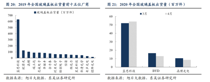 一方面,作为苹果外观结构件的核心供应商,蓝思科技自初代iPhone开始切入苹果供应端,与苹果协同开发了多款玻璃盖板产品并实现大规模商用,并逐步从盖板玻璃扩展至蓝宝石等领域,在苹果供应链的供货份额稳步提升。2020年上半年,蓝思科技的供货份额已超60%左右,市场领先地位明显。