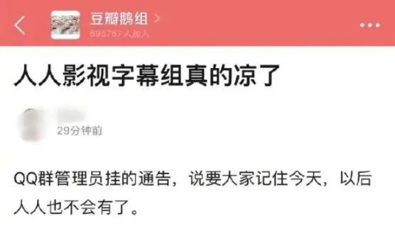 今年1月9日,一篇名为《人人影视字幕组真的凉了》网帖,再度印证了这个说法。