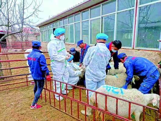 1月24日,在甘肃省兰州市榆中县夏官营镇的一家养殖场里,乡村兽医正在给羊采血。 受访者供图
