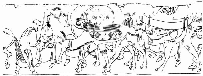 〔图十八〕北齐徐显秀墓胡人备车图