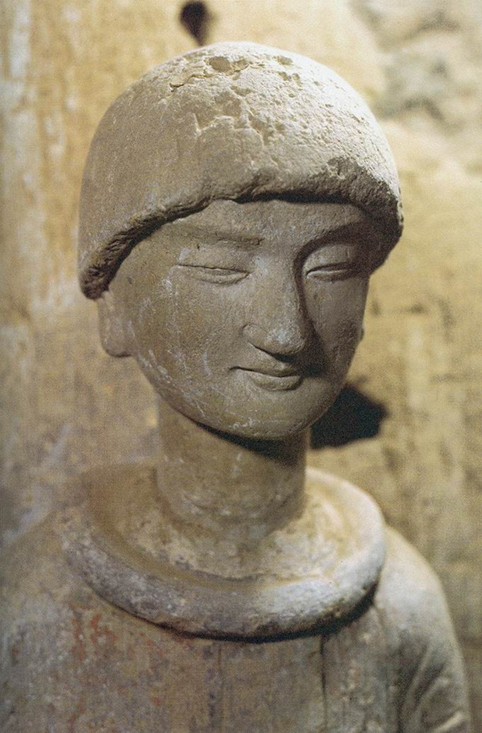 〔图三十四〕麦积山第123窟胡雏头顶辫子