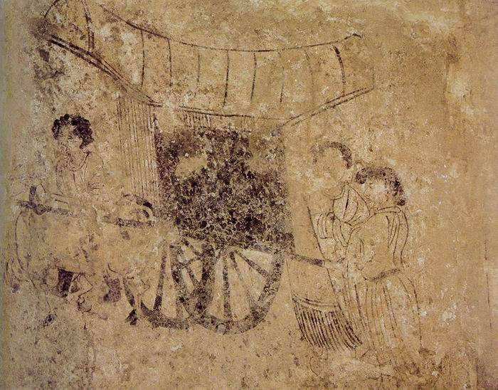 〔图三十二〕牛车出行图陕西礼泉唐李震墓出土