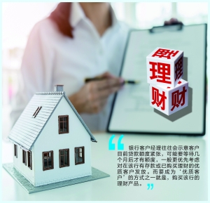 不过,李宇嘉坦言,银行存在的这种搭售理财现象并不是公开层面的,总行也不会发布类似通告,只是在业务受理上会向其倾斜。“银行客户经理往往会示意客户目前贷款额度紧张,可能要等待几个月后才有额度,一般更优先考虑对在该行有存款或已购买理财的优质客户发放。而要成为‘优质客户’的方式之一就是,购买该行的理财产品。”李宇嘉说。