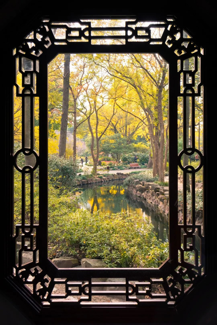 在园林的墙上,时常会有出现,镂空的“大洞”。其实它属于花窗的一种形式——空窗,又称洞窗,花墙洞等。由于空窗是仅有窗洞没有窗棂的窗,所以园内的景象如水墨画一般镶嵌“画框”之中。你站在窗内看风景,看风景的人在窗外看你,一步一景,空窗将内外景致融为一体。不仅如此,在洞窗还有增加空间视觉的作用。