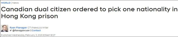 原来,加拿大外事部门曝出,一名拥有加拿大和中国所谓“双重国籍”的公民在中国香港被捕,并“被迫”在两个国籍之间做出选择。加拿大对此建议:选我。
